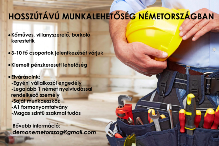 NÉMETORSZÁGI MUNKAVÉGZÉSRE ÉPÍTŐIPARI MUNKÁSOK JELENTKEZÉSÉT VÁRJUK!