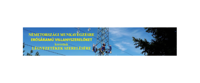 event 2020-07-28 | Cseh Andrea ERŐSÁRAMÚ VILLANYSZERELŐKET keresünk LÉGVEZETÉKEK SZERELÉSÉRE euro_symbol : Bruttó 16-21 EUR/ó language jo