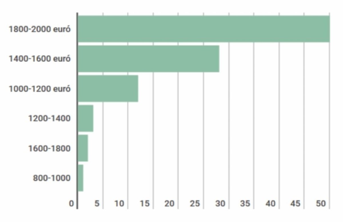 A megkérdezettek fele, azaz 50,38 százaléka nettó 1800-2000 euróért csomagolna, és indulna haza. Az emberek 30 százaléka beérné havi nettó 1600-1400 euróval is, 12,90 százaléka pedig örülne a nettó 1200-1000 eurónak havonta. 100 személy (3,87 százalék) voksolt a nettó 1400-1200 eurós magyar bérezésre, és körülbelül 60 személy (2,20 százalék) menne haza dolgozni havi 1800-1600 euróért. Akadt olyan is (kb. 1,66 százalék), aki megelégedne nettó 800-1000 eurós magyar fizetéssel.