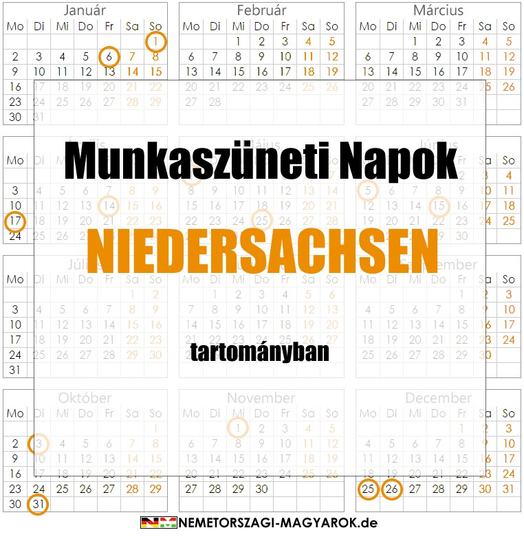 Ezen az oldalon összeállítottuk nektek a Niedersachseni ünnepnapok listáját amit minden évben aktualizálunk. A munkaszüneti napok naptár formájában is megtalálhatók lennebb, hogy könnyebben megtaláljátok őket.